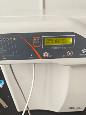 黃州區糧食應急保障中心在糧食質量檢測、農藥殘留分析等關鍵環節對實驗用水有著嚴格要求。針對糧食檢測對重金屬、有機物含量的特殊控制要求,滲源科技設計的SYS-III-20L系統采用"雙級反滲透+雙顯+多通道純化柱"工藝,產水電阻率穩定達到18.2MΩ·cm(在線監測),微生物≤1cfu/ml,微顆粒物≤1個/ml,重金屬含量≤0.1ppb,完全滿足原子吸收光譜檢測、色譜分析等精密儀器檢測的用水需求。