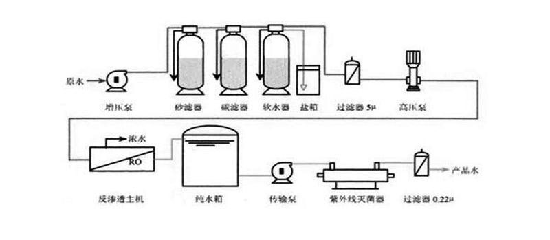 上圖一所示流程為一般實驗室超純水機制水流程,鹽箱與紫外線滅菌器都屬于可選配置,那么單純的超純水機只有預處理、RO反滲透膜、精密過濾器等幾個部件組成,這幾個部分基本都存在于所有的標配超純水機上。